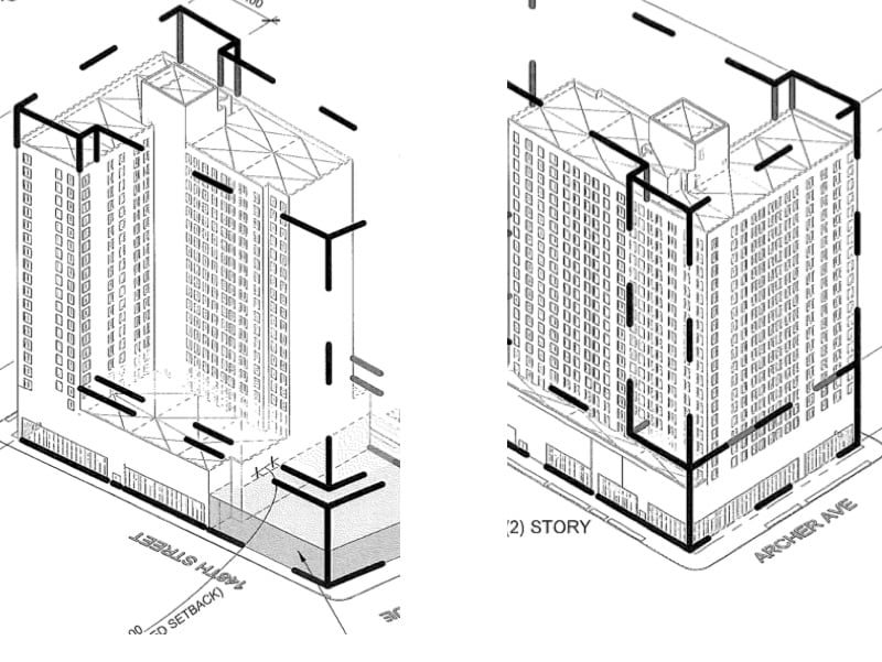 147-27 Archer Avenue axonometric diagram, front and back (Credit - Jonathan Imani architect vis DOB)