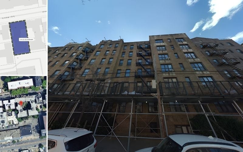 The seller Olshan Properties purchased five properties in three transactions for a total of $41 million and sold one property in one transaction for a total of $3 million over the same time period. The former owners according to the Department of Housing Preservation and Development includes Zachary Bornstein, head officer and Derlin Colon, site manager. The business entity is 144-35th Avenue Llc. The two properties with a total of 118,200 square feet of built space generated revenue of $2.3 million per year or $19 per square foot. The sale price per square foot was $110.