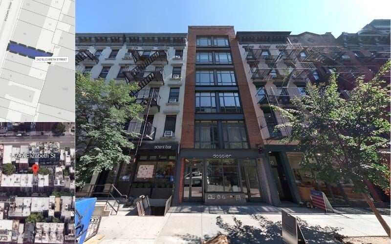 The residential walkup building with 7 residential units in Nolita has 14,451 square feet of built space and 7,733 square feet of additional air rights for a total buildable of 22,195 square feet according to a PincusCo analysis of city data. The parcel has frontage of 20 feet and is 92 feet deep with a total lot size of 1,860 square feet. The zoning is C6-2 which allows for up to 6 times floor area ratio (FAR) for commercial and up to 6.02 times FAR for residential. The city-designated market value for the property in 2022 is $5 million. Citizens Bank on January 26, 2026 bought a loan with a combined original principal of $11.5 million from PIMCO and Webster Bank signed by Michael C. Xylas and Matthew Michalovsky, secured by 236 Elizabeth Street and 242 Elizabeth Street.