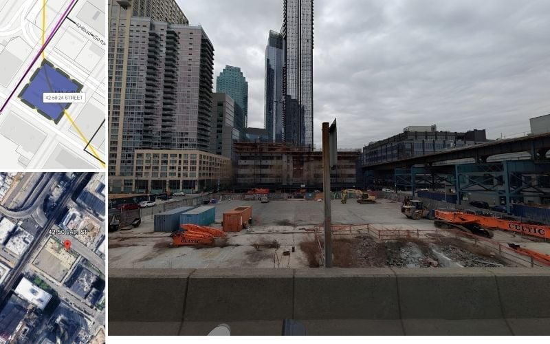On the lot, there are two active new building construction projects and major alteration projects with initial costs more than $5 million, totaling 514,091 square feet. The largest, Q01263805, is a new building project for a 387-unit, 268,204 square-foot R-2 building submitted by United Construction & Development Group and filed by William Xu with plans filed August 12, 2025 and it has not been permitted yet. The second largest, 420666363, is a new building project for a 240-unit, 245,887 square-foot R-2 building submitted by Fisher Brothers and filed by Alex Adams with plans filed October 18, 2019 and permitted November 4, 2020.
